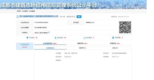 根據(jù)2021年印發(fā)的《成都市建設(shè)工程質(zhì)量檢測機構(gòu)及檢測人員信用評價管理辦法》,成都市建筑市場信用信息公示平臺綜合考慮檢驗檢測機構(gòu)在經(jīng)營期間各項表現(xiàn),對獲得表彰、人員管理、設(shè)備管理、檢驗檢測環(huán)境管理、檢測能力驗證、檢測報告管理、資質(zhì)運行等26個項目進(jìn)行評價,力求全面客觀評價檢驗檢測機構(gòu)綜合能力。信用評級結(jié)果分為4類,最高等級為A類,表示誠信度較高、各項評價指標(biāo)較好、質(zhì)量管理水平較好、社會信譽較高。