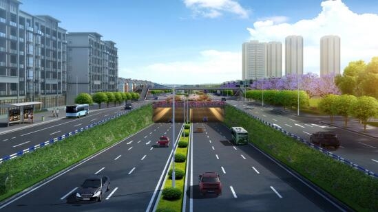 重慶市重鋼片區(qū)百花村隧道道路工程位于重慶市重鋼片區(qū),是重慶市重難點(diǎn)建設(shè)項(xiàng)目,設(shè)計(jì)道路左線全長(zhǎng)1104.628米,其中隧道長(zhǎng)660.525米;右線全長(zhǎng)898.092米,其中隧道長(zhǎng)552米。設(shè)計(jì)終點(diǎn)段標(biāo)準(zhǔn)路幅寬度為36.5米,隧道標(biāo)準(zhǔn)路幅寬度為9米,道路等級(jí)為城市次干路,雙向四車道,設(shè)計(jì)車速為40km/h,含隧道1座(按左、右線實(shí)施)。項(xiàng)目通車后,實(shí)現(xiàn)了大渡口重鋼片區(qū)東西貫通,進(jìn)一步加強(qiáng)了九宮廟商圈與濱江片區(qū)的聯(lián)系,激活了豐富的濱江岸線資源,對(duì)加快重鋼片區(qū)的產(chǎn)業(yè)轉(zhuǎn)型步伐、提升片區(qū)土地利用價(jià)值、促進(jìn)大渡口區(qū)社會(huì)經(jīng)濟(jì)發(fā)展具有重要意義。