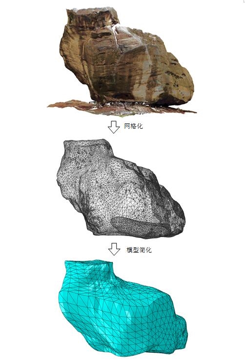 在對紗帽石穩(wěn)定性進行評估過程中,市建科院技術(shù)團隊與重慶交通大學(xué)相關(guān)專家經(jīng)過多次溝通,確定了定性分析+數(shù)值模擬的評估方案。評估中定性分析了紗帽石的當前所處環(huán)境、形態(tài)特征、結(jié)構(gòu)特征、破壞模式等,作出紗帽石穩(wěn)定性定性分析初步評價。另外,評估采用三維激光掃描儀,對紗帽石進行3D掃描,復(fù)原出紗帽石的三維模型,再將其導(dǎo)入有限元計算軟件中,建立含有紗帽石的邊坡模型,對其在多種荷載工況下的穩(wěn)定性進行了有限元計算,最終提出了合理的評估和建議。