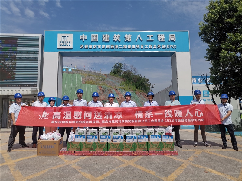 夏日炎炎,高溫酷暑。8月4日上午,重慶設(shè)計集團(tuán)所屬子企業(yè)重慶市建筑科學(xué)研究院有限公司黨委書記、董事長冉龍彬帶隊赴監(jiān)理咨詢二公司代建的“重慶市東南醫(yī)院二期”項目慰問堅守在項目管理一線的職工,為他們送去清涼與關(guān)懷,指導(dǎo)并助推項目建設(shè)。黨委辦公室、技術(shù)質(zhì)量安全部和生產(chǎn)經(jīng)營發(fā)展部相關(guān)人員陪同慰問。