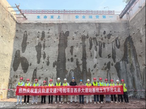 重慶軌道交通7號(hào)線一期工程線路全長27.822公里,起于科學(xué)城站,止于金鳳站,主要沿縱五線、飛雪路、永泰路、科學(xué)大道、高新大道、櫻桃路敷設(shè),共設(shè)車站18座,換乘站7座,分別與規(guī)劃17號(hào)線、15號(hào)線、27號(hào)線、永川線、19號(hào)線及既有1號(hào)線換乘。西井大道站是重慶軌道交通7號(hào)線一期工程的第六座車站,位于西林大道路與永泰路交叉路口南側(cè),沿永泰路呈南—北向設(shè)置。車站有效站臺(tái)寬14米,標(biāo)準(zhǔn)段寬,總長306.6米,為地下兩層島式站臺(tái)車站,采用明挖法施工。車站基坑深18.3至22.6米,圍護(hù)結(jié)構(gòu)采用樁加錨桿及板肋式錨桿擋墻相結(jié)合的支護(hù)形式。該線路全線通車后,對提升西部槽谷軌道交通線網(wǎng)覆蓋率,支撐片區(qū)高質(zhì)量發(fā)展具有重要意義。