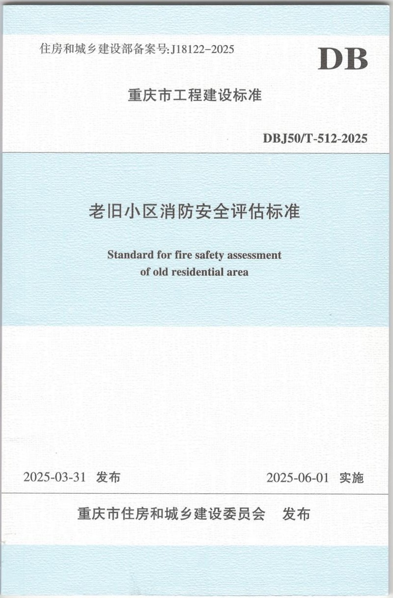 近日,由重慶設(shè)計(jì)集團(tuán)下屬子企業(yè)重慶市建筑科學(xué)研究院有限公司(以下簡(jiǎn)稱"市建科院")牽頭編制的重慶市工程建設(shè)標(biāo)準(zhǔn)《老舊小區(qū)消防安全評(píng)估標(biāo)準(zhǔn)》(DBJ50/T-512-2025)通過(guò)重慶市住房和城鄉(xiāng)建設(shè)委員會(huì)審批正式發(fā)布,將于2025年6月1日起開(kāi)始實(shí)施。