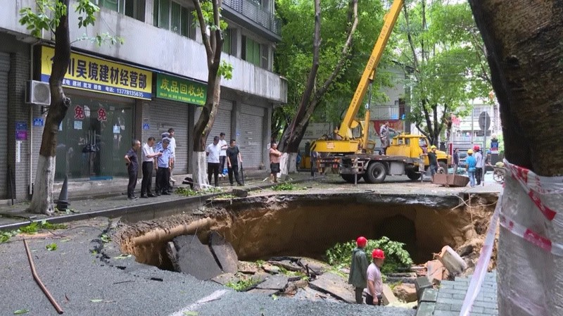 某區(qū)某街道路段因暴雨影響突發(fā)塌方,停靠在路邊的兩輛小車和一輛摩托車墜入坑中,事故發(fā)生后屬地公安、消防、應(yīng)急等多部門迅速響應(yīng)趕赴現(xiàn)場(chǎng)開展緊急處置工作,市建科院立即派出專業(yè)檢測(cè)團(tuán)隊(duì),前往現(xiàn)場(chǎng)開展道路兩側(cè)建筑物的變形檢測(cè)、監(jiān)測(cè)工作,作出準(zhǔn)確技術(shù)評(píng)判,為后續(xù)險(xiǎn)情處置提供理論依據(jù)。